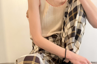 LY/VIS CHECK WIDE EASY TROUSERS -BROWN OMBRE-【ssstein】ST1467