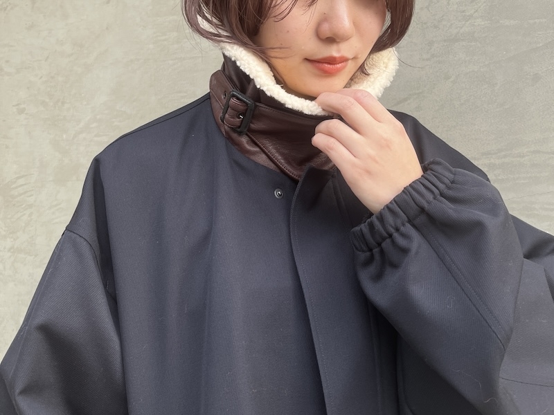 表地はしなやかで美しい表情のウールカルゼ、襟にはシープムートン、襟裏・タブにはカウレザーを採用されています。