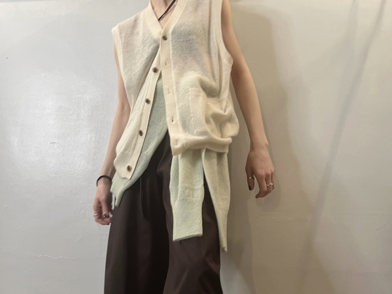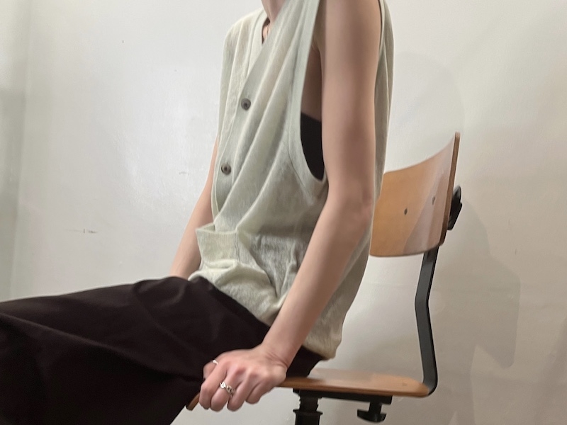 繊維が非常に細く、なめらかな肌触りが魅力のベビーアルパカを使用したsssteinのボタン付きニットベスト。