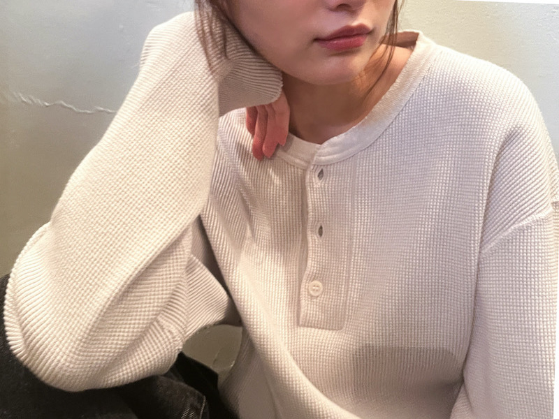 LONG-SLEEVE HENRY NECK WAFFLE T-SHIRT【unused】