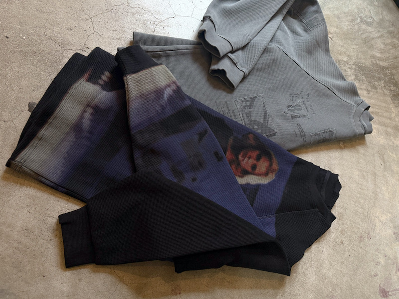 劇中のシーンや公開当時のフライヤーをプリントしたパッチを縫い合わせた「TERLINGUA WAFFLE SWEATSHIRT」