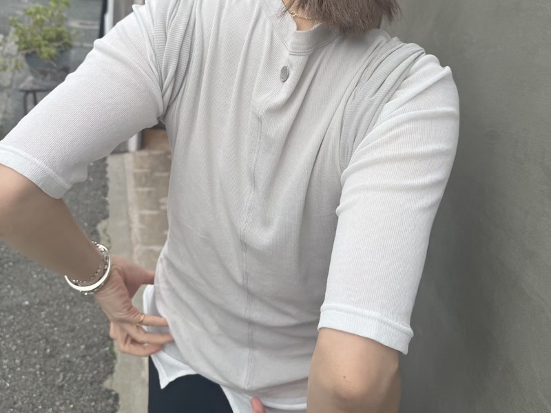 2枚セット仕様で、1枚でさらっと着るのはもちろん、レイヤードすることで奥行きのあるスタイリングも楽しめます。