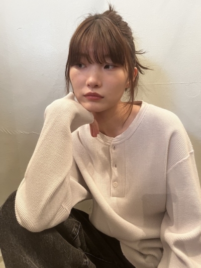 LONG-SLEEVE HENRY NECK WAFFLE T-SHIRT -PINK BEIGE-【unused】